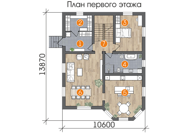 Просторный дом с двумя этажами грамотно спланированных помещений. Четыре больших спальни, просторная гостиная и кухня-столовая. Оригинальная архитектура здания навеет атмосферу светских бесед и веселых празднований.